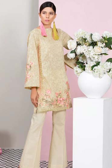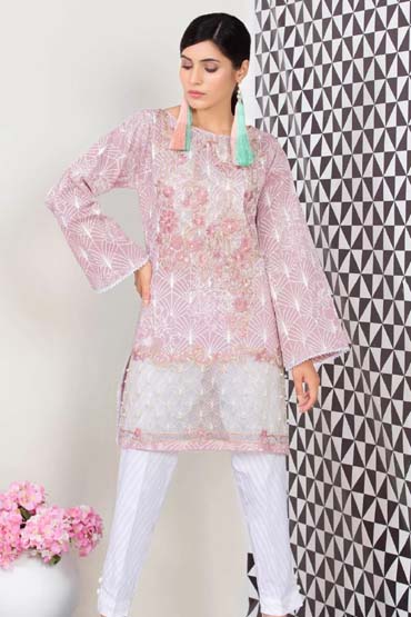One piece embroidered lawn shirt with sleeves that has motifs, in colour that vows to sing the symphony of summer.