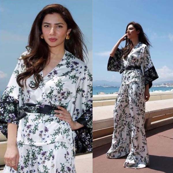 Flaunting the feminine floral and sensual attire by Bluemarine on the beachfront of Cannes, Mahira upped her fashion games by going minimal and looking retro in this breezy kimono style jumpsuit.