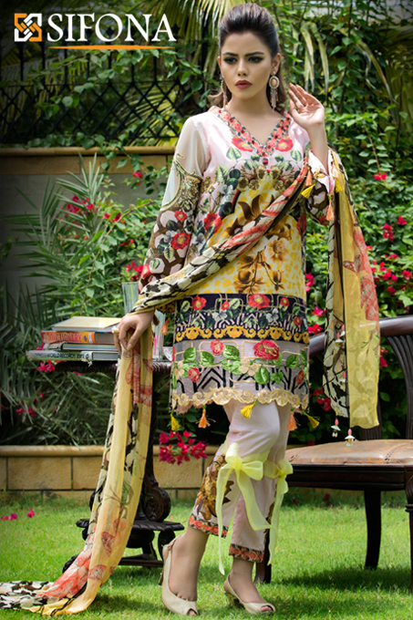 Sifona launched their new Melina vol 2 midsummer festive collection. The collection is a mixture of digital prints and embroidered work. Working with different silhouettes and embroidered trousers combined with printed chiffon dupattas. The colours they’ve used for the collection are soothing to eyes and bright summer shades which gives you a cool vibe and confidence.